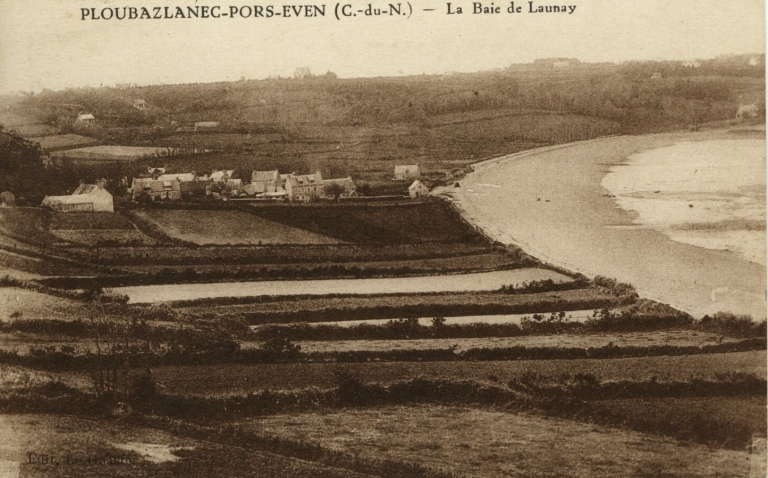 Vue du front de mer cultivée de la baie de Launay, début 20ème siècle (AD 22, carte postale, 16 Fi)Immatriculation