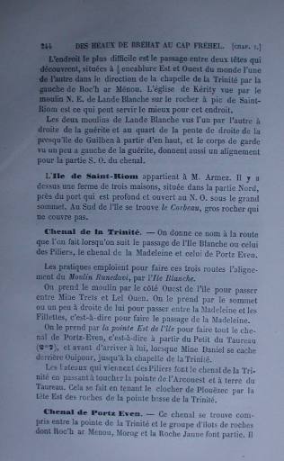 Extrait du 'Pilote' de Thomassin, 1875 : descriptif de l'île Saint-Riom et des chenaux (collection particulière)Immatriculation