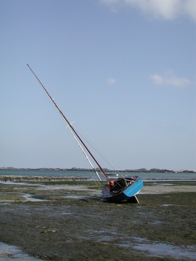 Vue du bateau dans son environnement (baie de Launay)Immatriculation