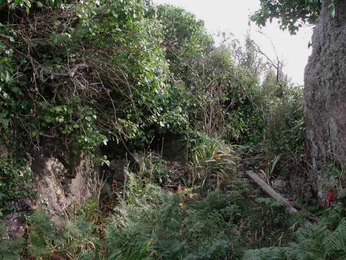 Vue d'une construction, en forme de grotte entre deux rochers (vestiges monastiques ?)Immatriculation
