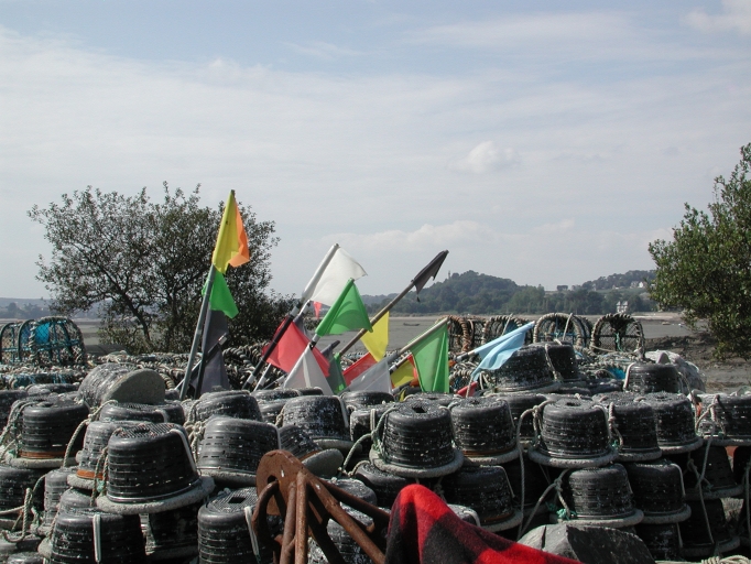 Vue des casiers à bulots en dépôt sur le terre-plein du portImmatriculation