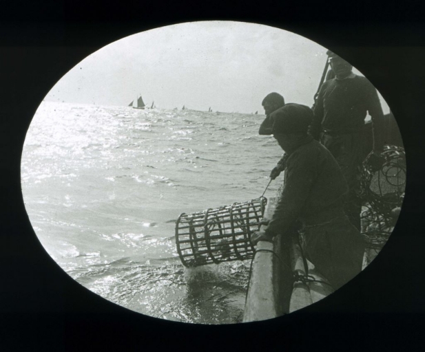 Mise à l'eau d'un casier au large de l'Ile de Sein, début 20ème siècle (collection particulière, Institut océanographique de Paris)Immatriculation