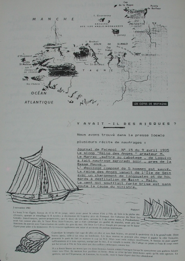 Enquête de la classe de CM1-CM2 de l'école publique de Loguivy-de-la-Mer, 1992 : 'les risques encourus' (livret, 'De Loguivyde-la-Mer à l'Île de Sein', p. 6, collection particulière)Immatriculation