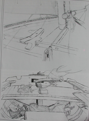 Dans : 'Des Paimpolais en Iroise, A Durzunel, la renaissance d'un canot loguivien'/ Clochon, Jean-Pierre, Le Chasse-Marée n° 20, Douarnenez : Editions Le Chasse-Marée/Armen, 1985, p. 64.Dessin.