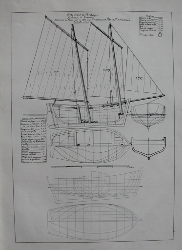 Dans : 'Des Paimpolais en Iroise, A Durzunel, la renaissance d'un canot loguivien'/ Clochon, Jean-Pierre, Le Chasse-Marée n° 20, Douarnenez : Editions Le Chasse-Marée/Armen, 1985, p. 54.Plan.