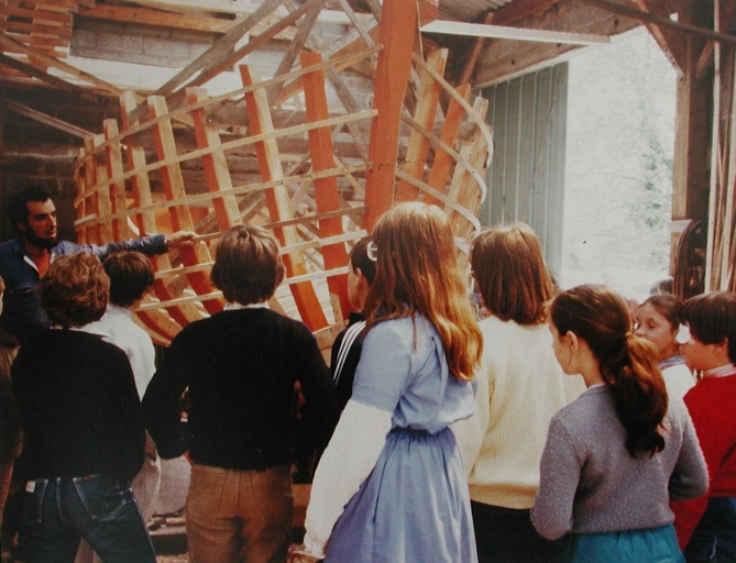 Les enfants de l'école publique de Loguivy en visite au chantier, 1984 (F. Variot, collection particulière)Immatriculation