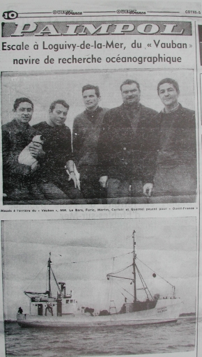 Escale à Loguivy de l'équipage loguivien du navire océanographique de l'ORSTOM, le 'Vauban', avant le départ pour Madagascar, novembre 1965 (Ouest-France, collection particulière)Immatriculation