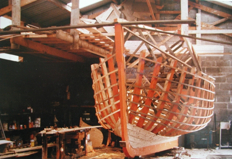 La construction de 'An Durzhunel' au chantier Yvon Clochet en 1984 : le bordage de la coque par les fonds et ensuite par la préceinte (F. Variot, collection particulière)Immatriculation