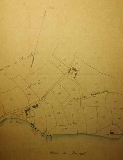 Extrait du cadastre de 1830 : demande de concession pour une cabine de bains sur la grève de Kerroc'h (AD 22)Immatriculation