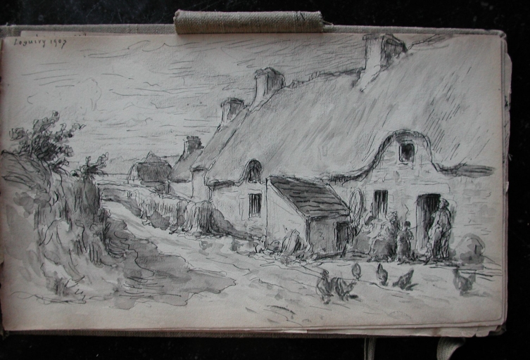 Extrait d'un carnet à dessin de Auguste Boulard (fils) : chaumière, début 20ème siècle (collection particulière)Immatriculation