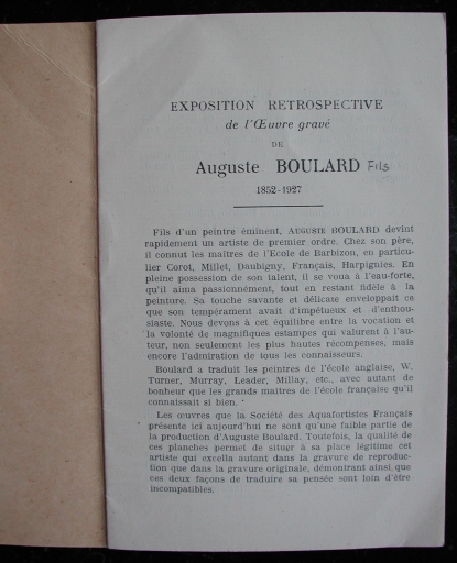 Catalogue des oeuvres gravées de Auguste Boulard (fils), 1928 (collection particulière)Immatriculation