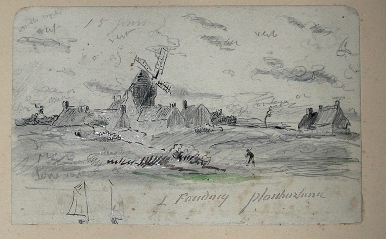 Dessin de Louis-Marie Faudacq : moulin à Ploubazlanec (collection particulière)Immatriculation