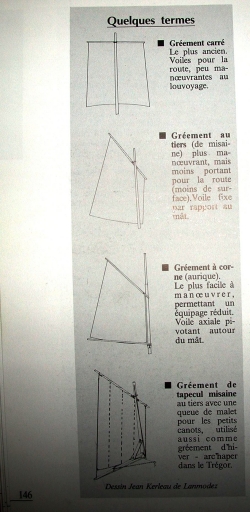 Dessin des gréments dont le grément de misainier à tape-cul (Jean Kerleau)Immatriculation