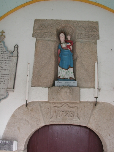 Vue de la Vierge à l'enfant au-dessus du porche de la chapelle de Perros-HamonImmatriculation