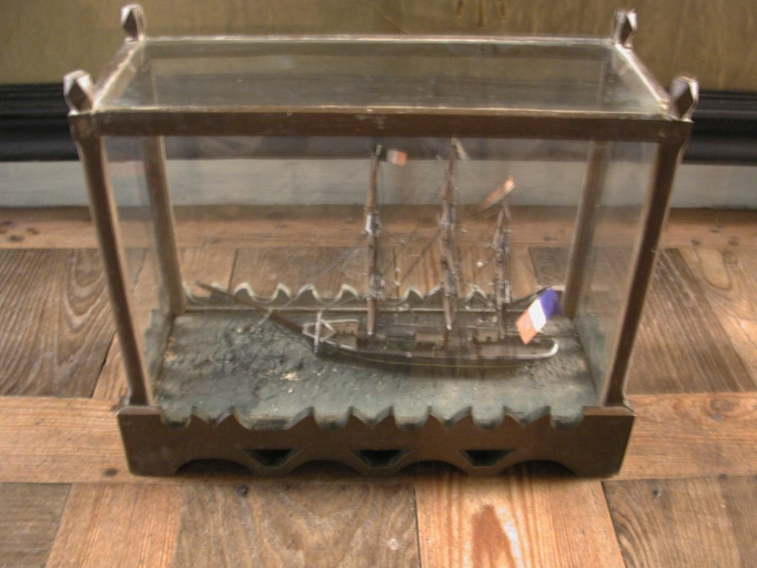 Ex-voto sous vitrine : coque de navire, datée du 20ème siècleImmatriculation