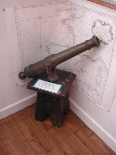 Vue d'un canon pierrier en bronze, embarqué à bord d'un trois mâts, don de Mrg KerlévéoImmatriculation