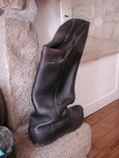 Vue de l'un des sabots-bottes en cuir cousu (non clouté) d'un marin islandaisImmatriculation