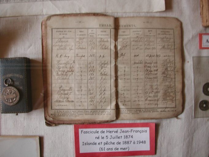 Vue du fascicule du marin pêcheur embarqué pour l'Islande et la pêche côtière entre 1887 à 1948 : Hervé-Jean FrançoisImmatriculation