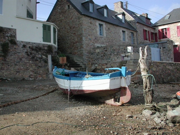 Vue des formes 'trapues' de la coque : remarquer le bordé d'échouage et le bordé de renfor extérieurImmatriculation