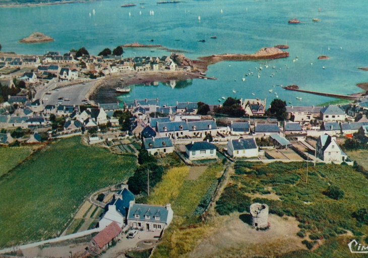 Vue la partie Sud-Est du bourg de Loguivy, vers 1960 : remarquer les terrains cultivés et les anciens bâtiments de ferme avec le toit en tuiles (carte postale, collection particulière)Immatriculation