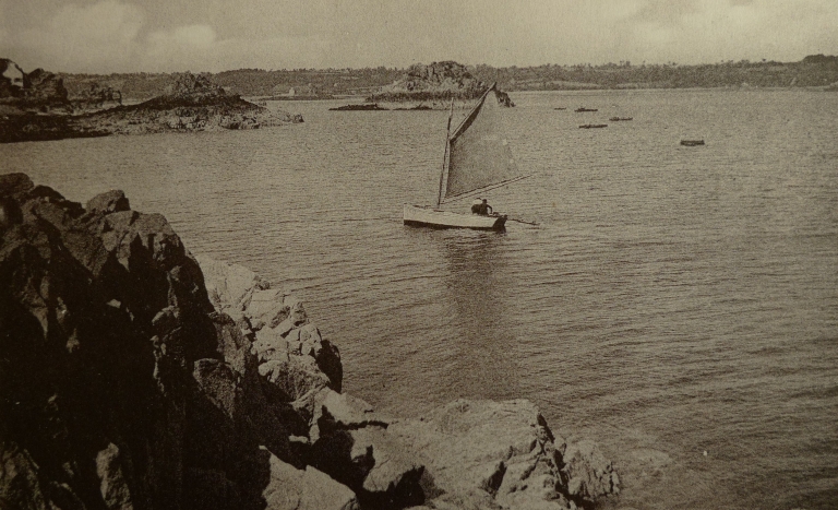 Type de misainier de Loguivy, au début du 20ème siècle : la maneuvre à l'aviron remplace le gouvernail (carte postale, collection particulière)Immatriculation