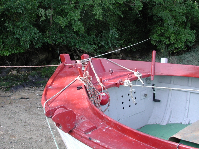 Vue de l'avant : remarquer la charpente légère et les équipements pour la pêche aux lignes de traîne, le vire casiersImmatriculation