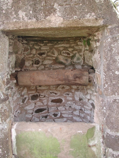 Vue de détail du puits : le tambour, la maçonnerie intérieure en moellons de schiste et la margelleImmatriculation