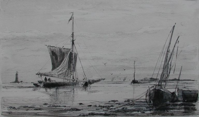 Dessin de Louis Marie Faudacq : misainiers et grand sloop avec mât de flèche à l'embouchure de la rivière de Tréguier, fin 19ème siècle (collection particulière)Immatriculation