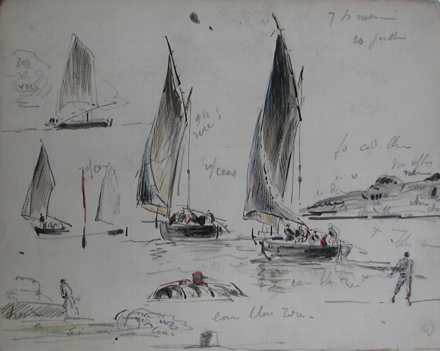 Dessin de Louis Marie Faudacq :misainiers sabliers en manoeuvres, fin 19ème siècle (collection particulière)Immatriculation