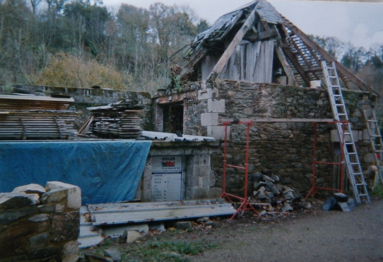 Etat du moulin de Kerousy avant sa restauration vers 1985, façade Nord (collection particulière)Immatriculation