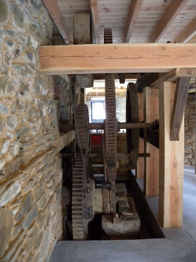 Vue des rouages de transmission à l'intérieur du moulinImmatriculation