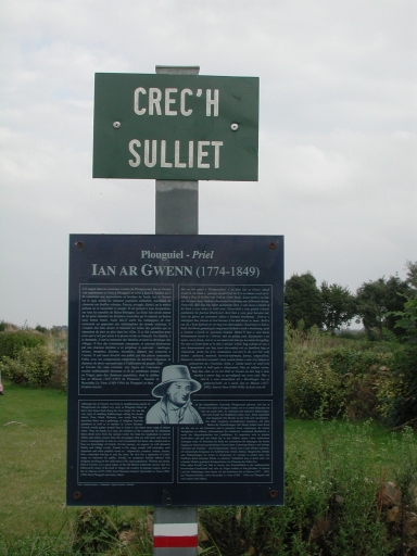 Panneau d'interprétation en hommage à Iann ar Gwenn (1774-1842), l'un des chansonniers de la commune, sur le site de Krec'h SulhietImmatriculation