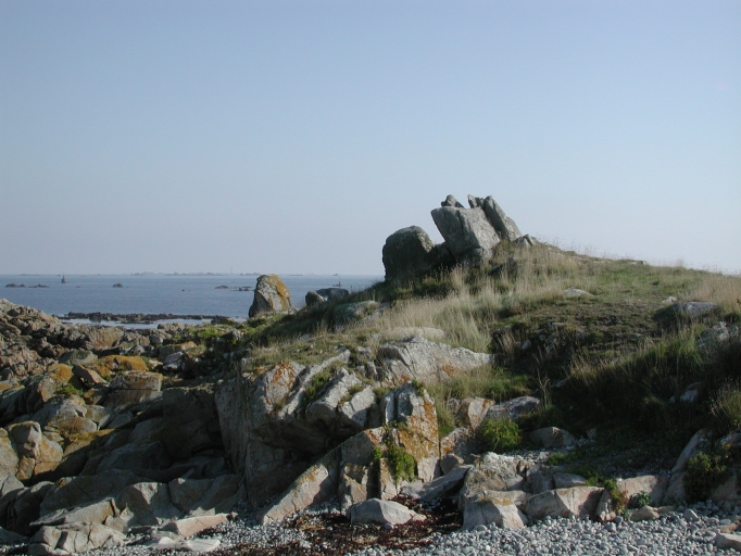 Vue du rocher utilisé pendant la seconde guerre mondiale pour surveiller le débarquement des alliés, à l'bri du sémaphore de PleubianImmatriculation