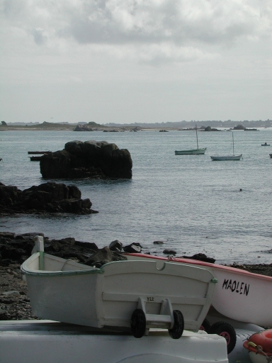 Vue d'une annexe joliment tonturée avec deux roues fixées à l'arrière du tableau, construite par Yves Le CoadouImmatriculation
