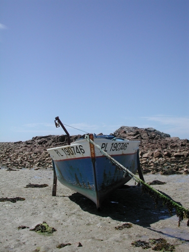 Vue de la forte étrave tulipée du canot demi ponté 'Armor'Immatriculation
