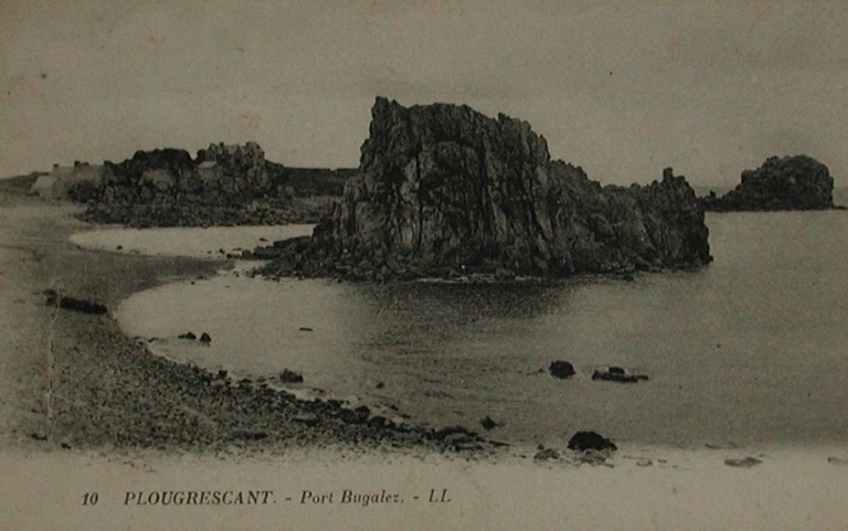 Pors Bugalé : le rocher 'Saint-Gonéri', début 20ème siècle : curiosité géologique (carte postale, collection particulière)Immatriculation