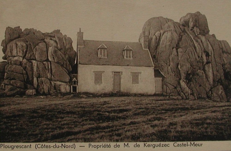 La maison de l'ancien maire de Plougrescant Gustave De Kerguézec entre les rochers de Castel Meur, 1er quart 20ème siècle (carte postale, collection particulière)Immatriculation