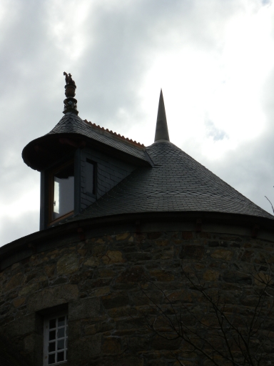 Vue de détail de la lucarne surmontée d'un épi de faîtageImmatriculation