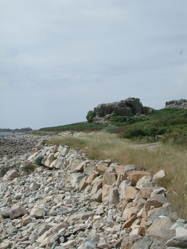 Vue des enrochements qui suivent le trait de côte insulaire de l'Île IvinecImmatriculation