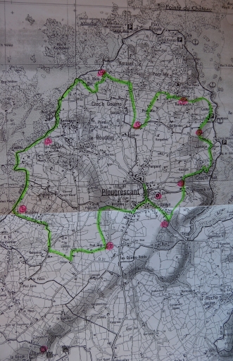 Extrait de la carte IGN : le circuit des lavoirs et fontaines de Plougrescant (Office du Tourisme de Plougrescant)Immatriculation