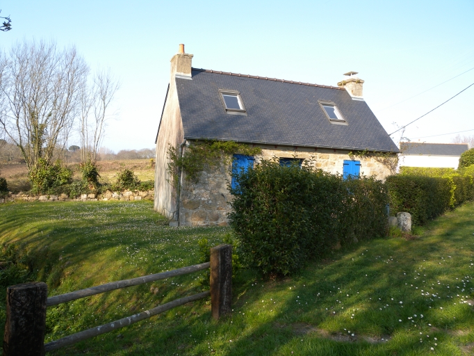 Vue de l'ancienne chapelle Saint-Maudez, transformée en maison d'habitation, à côté de la fontaineImmatriculation