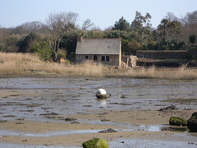 Vue de l'ancien moulin dans son environnement au fond de la baie de PellinecImmatriculation