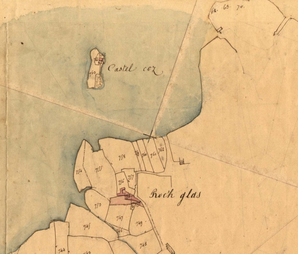 Extrait du cadastre de 1834, A3 763 à 766, dont La parcelle 764 bâti sur les 4 parcelles cadastrées (AD 22)Immatriculation
