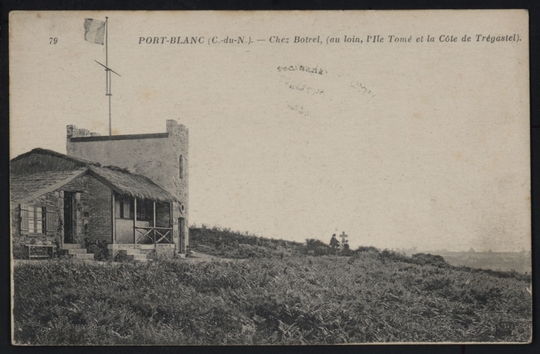 Vue de l'ancien mât sémaphorique de Port-Blanc, 1er quart 20ème siècle (carte postale, AD 22)Immatriculation