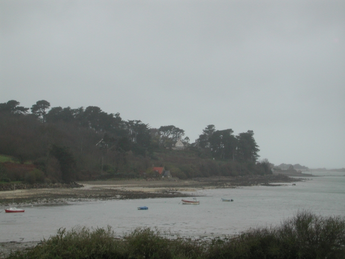 Vue du front de mer de la baie de Pellinec : remarquer les maisons en flanc de coteauImmatriculation