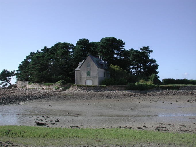 Vue générale de la façade Sud de l'habitation, avec les vestiges de la petite jetée qui rejoignait autrefois la pêcherieImmatriculation