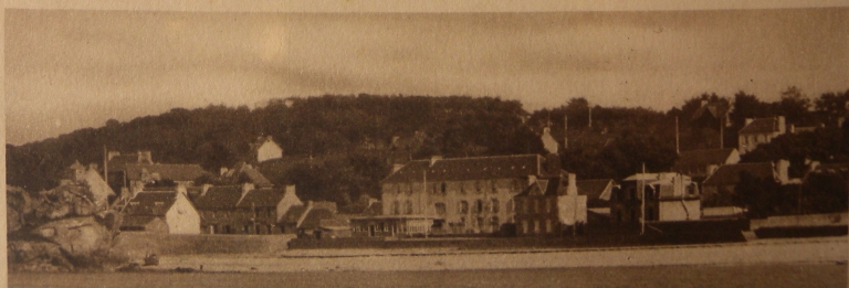 Vue du front de mer du Port-Blanc et en particulier du mur de défense contre la mer, avant la construction de la digue, 1er quart 20ème siècle (collection particulière)Immatriculation