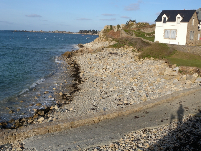 Vue d'ensemble de l'ancienne cale de Rohanig et les murs de défense contre la merImmatriculation