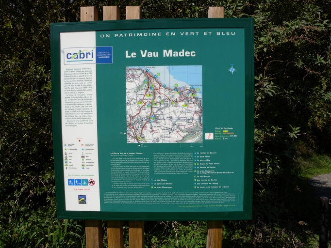 Vue du panneau d'interprétation du Vau Madeuc, à l'entrée du sentier de découverte (CABRI)Immatriculation