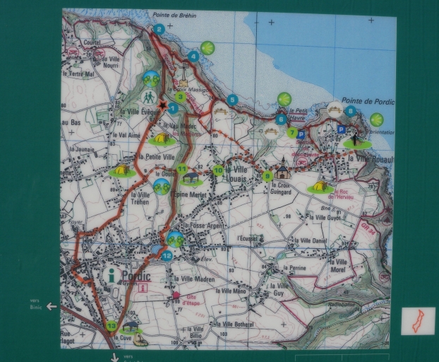Vue de la carte des sentiers de randonnée et des patrimoines remarquables de la commune de Pordic (CABRI)Immatriculation
